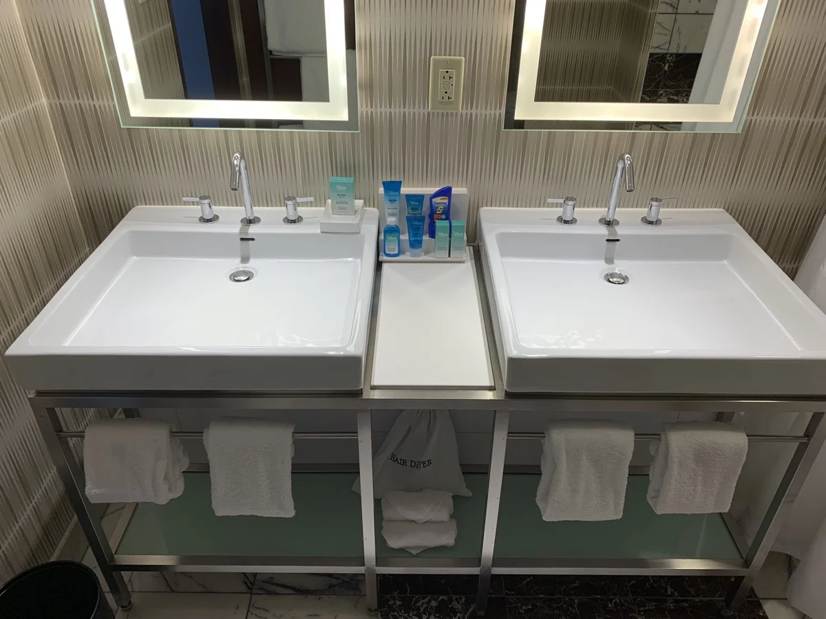 Above all, Disney hotels need to be built with families in mind. This means jumbled mornings with people coming and going. Sliding doors—and separating the toilet from the rest of the bathroom—is clutch for these busy mornings.